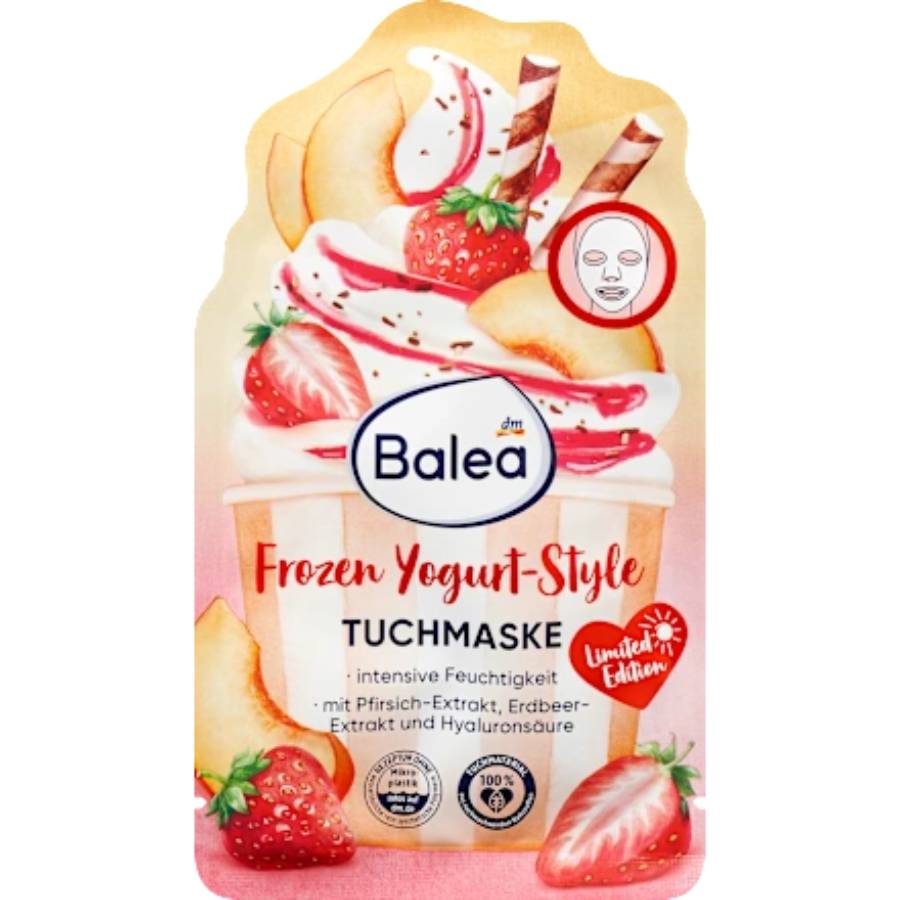 Η υφή μάσκας Frozen Yogurt-Style από την Balea μετατρέπει την περιποίηση της επιδερμίδας σε μια αναζωογονητική εμπειρία. Η μεταξένια απαλή υφή αγκαλιάζει απαλά το περίγραμμα του προσώπου και παρέχει εντατική ενυδάτωση. Εμπνευσμένη από τη γλυκιά αναζωογόνηση του παγωμένου γιαουρτιού, η μάσκα προσφέρει καταπραϋντική αναζωογόνηση και αφήνει την επιδερμίδα θρεμένη και αναζωογονημένη. Ιδανική για ένα γρήγορο διάλειμμα, χαρίζοντας στην επιδερμίδα μια ώθηση υγρασίας και μια απαλή αίσθηση.