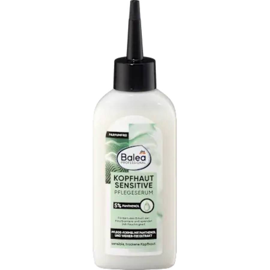 Ο ορός Balea Professional Scalp Sensitive Care Serum προάγει τη διατήρηση ενός άθικτου δερματικού φραγμού και παρέχει έως και 24 ώρες ενυδάτωσης. Η καταπραϋντική σύνθεση, χωρίς άρωμα, περιέχει 5% πανθενόλη και εκχύλισμα λευκού τσαγιού. Χωρίς μικροπλαστικά και υδατοδιαλυτά, καθαρά συνθετικά πολυμερή.