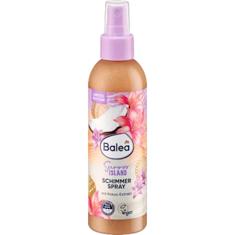 Το σπρέι λάμψης Summer Island από την Balea σας μεταφέρει σε μια σαγηνευτική εμπειρία αρώματος που αιχμαλωτίζει τις αισθήσεις και δημιουργεί μια φρέσκια, καλοκαιρινή αίσθηση. Με τις τροπικές του νότες μεταφέρει την αίσθηση των διακοπών και της χαλάρωσης, ενώ η ελαφριά λάμψη δίνει στο δέρμα λαμπερή επιδερμίδα.Ιδανικό για καθημερινή χρήση, το σπρέι σώματος απλώνεται εύκολα από το πρακτικό μπουκάλι ψεκασμού και προσφέρει μια πινελιά πολυτέλειας όποτε το θέλετε. Ιδανικό για όποιον θέλει να εμπλουτίσει τη μέρα του με ένα αναζωογονητικό άρωμα και μια πρώτης τάξεως λάμψη.