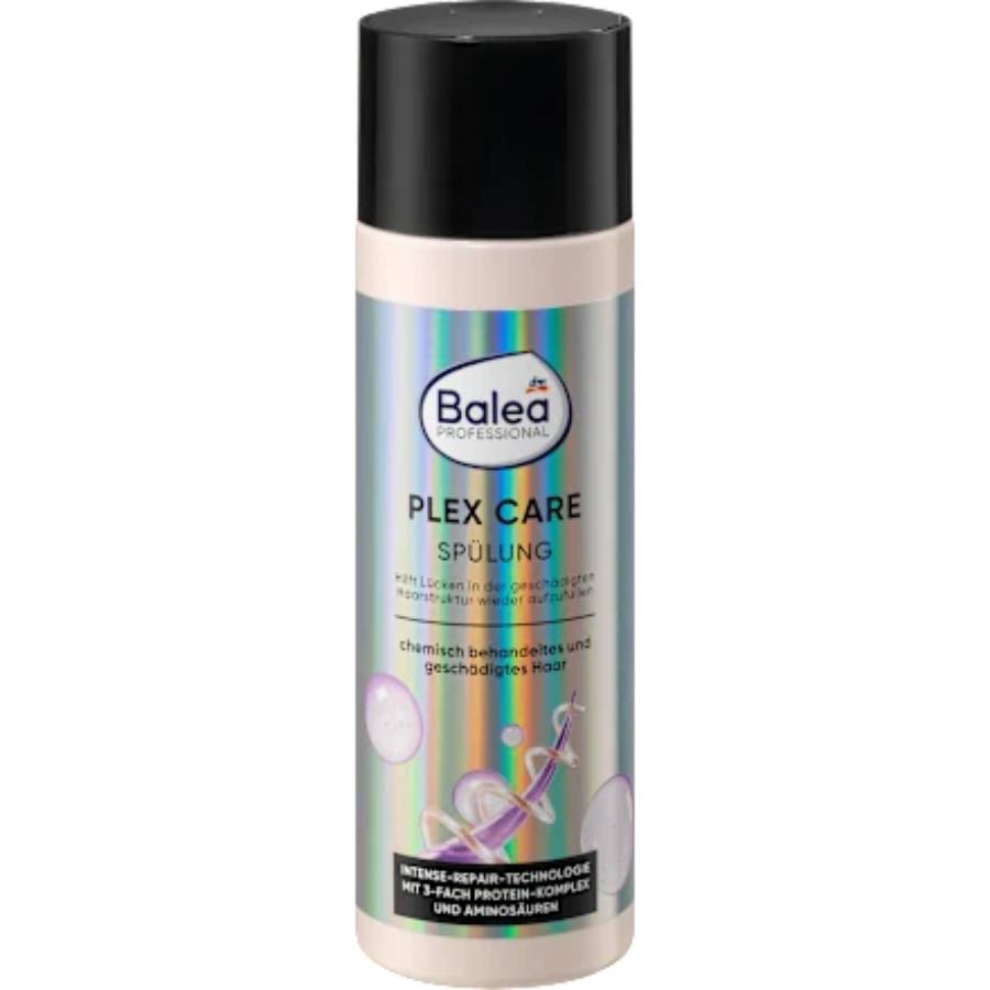 Το μαλακτικό Plex Care της Balea Professional έχει μια ισχυρή φόρμουλα που επανορθώνει, σφραγίζει και προστατεύει τα μαλλιά. Η Τεχνολογία Έντονης Επανόρθωσης με Σύμπλεγμα Τριπλής Πρωτεΐνης και αμινοξέα ενδυναμώνει τα μαλλιά και αναδομεί την ταλαιπωρημένη δομή της τρίχας. Λειαίνει τη δομή της τρίχας και μειώνει τη φθορά που προκαλείται από την ψαλίδα και το σπάσιμο. Το αποτέλεσμα είναι ενισχυμένες ίνες τρίχας και λαμπερά, επανορθωμένα μαλλιά.